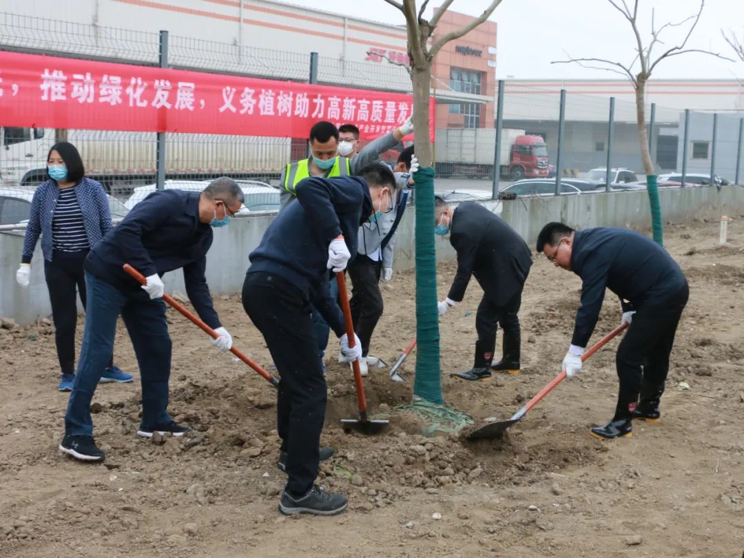 植樹現(xiàn)場(chǎng),大家分工協(xié)作,或合力扶苗,或揮鍬填土,或踩實(shí)壓緊,或提桶澆水,道道工序做的仔細(xì)認(rèn)真,一派熱火朝天的忙碌景象。一排排新栽植的樹苗,錯(cuò)落有致、迎風(fēng)挺立,帶著大家辛勤的汗水和對(duì)未來的美好希望,讓春日里的高新區(qū)充滿了盎然生機(jī)。