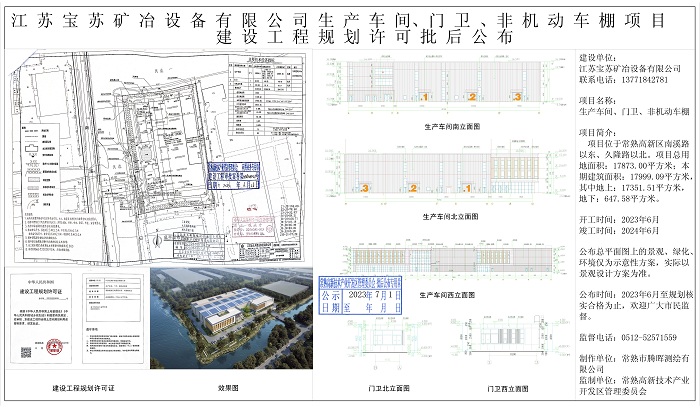 江蘇寶蘇礦治設(shè)備有限公司生產(chǎn)車間、門衛(wèi)、非機動車棚項目建設(shè)工程規(guī)劃許可批后公布