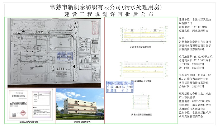常熟市新凱泰紡織有限公司(污水處理用房)建設(shè)工程規(guī)劃許可批后公布