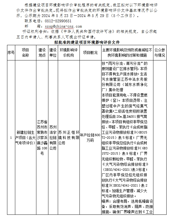 2024年5月23日常熟高新技術產(chǎn)業(yè)開發(fā)區(qū)關于擬作出審批決定的環(huán)境影響評價文件公示